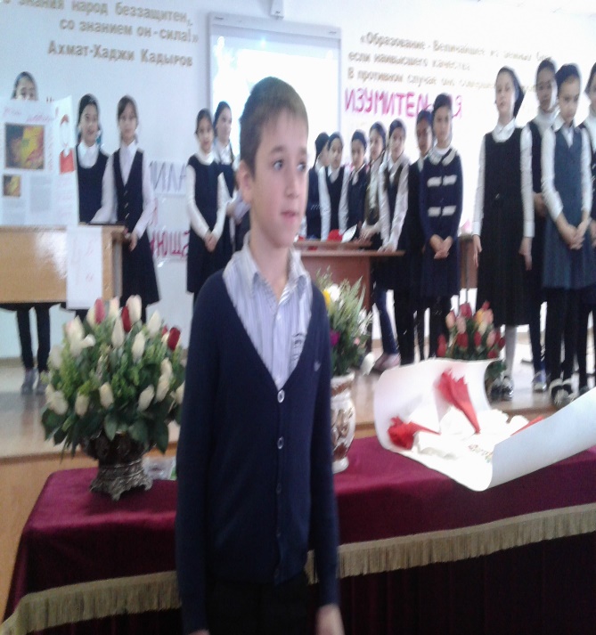 Также прошли открытые уроки и внеклассные мероприятия: в 4 «б» классе урок литературы на тему «Н.Носов «Огородники»» - классный руководитель Шахидова А.З. и внеклассное мероприятие на тему «Что за прелесть эти сказки!» в 4 «а» классе- классный руководитель Межидова Р.Ш. Самое активное участие приняли учащиеся 4-х классов при работе над проектом ко Дню матери (4 «а» -классный руководитель Межидова Р.Ш.,4 «б» -классный руководитель Шахидова А.З., 4 «д» -классный руководитель Крошна Л.М.). Принцип проведения Недели начальных классов, что каждый ребенок является активным участником всех событий, полностью себя оправдал.