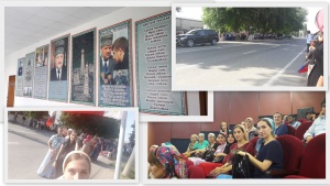 20.08.16 г. Коллектив нашей школы принял участие в мероприятии памяти Первого президента Чеченской Республики, Героя Росси А-Х.А. Кадырова, организованный Министерством по делам молодежи Чеченской Республики на базе Дворца культуры г. Шали. На данном мероприятии ученица 11 класса Ташухаджиева Мизан заняла 2 место в номинации «Эссе собственного сочинения» об А-Х. Кадырове.