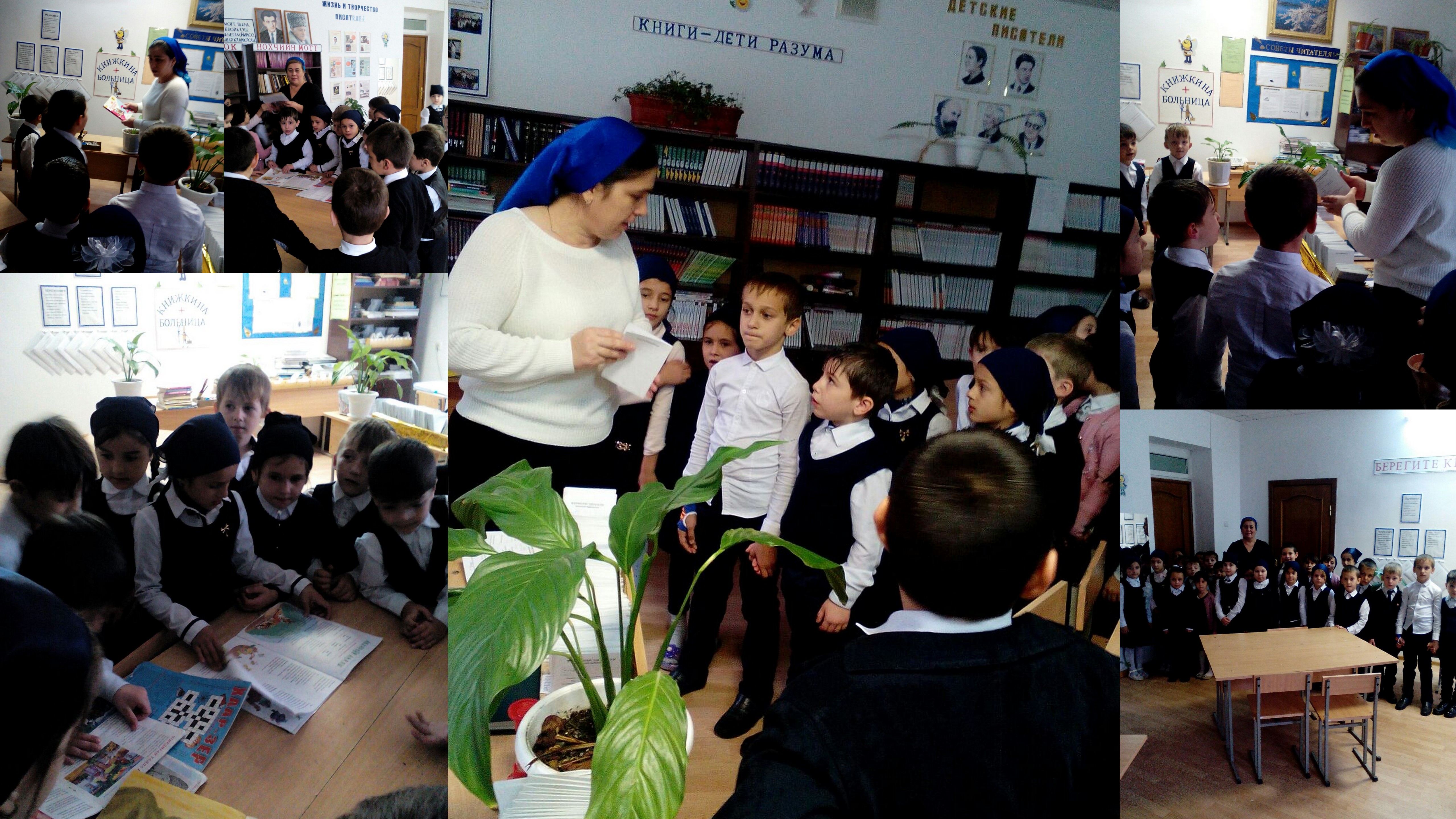 Учащиеся 1-х классов выяснили, что библиотека – это хранилище книг, что каждая книга стоит на своем месте, и как самостоятельно найти нужную книгу. Зав. Библиотекой Алиева Ф.С. объяснила детям правила пользования библиотекой: