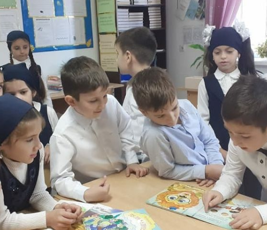 Малыши познакомились с книжным домом. Ребята узнали много нового и интересного о библиотеке, получили базовые понятия по основам библиотечно-библиографической грамотности, так же узнали, что такое формуляры и как они заполняются. Школьный библиотекарь Алиева Ф.С. ознакомила учащихся с правилами поведения в библиотеке. Особый интерес у первоклассников вызвала выставка «Герой нашего времени», посвященная А-Х.Кадырову.