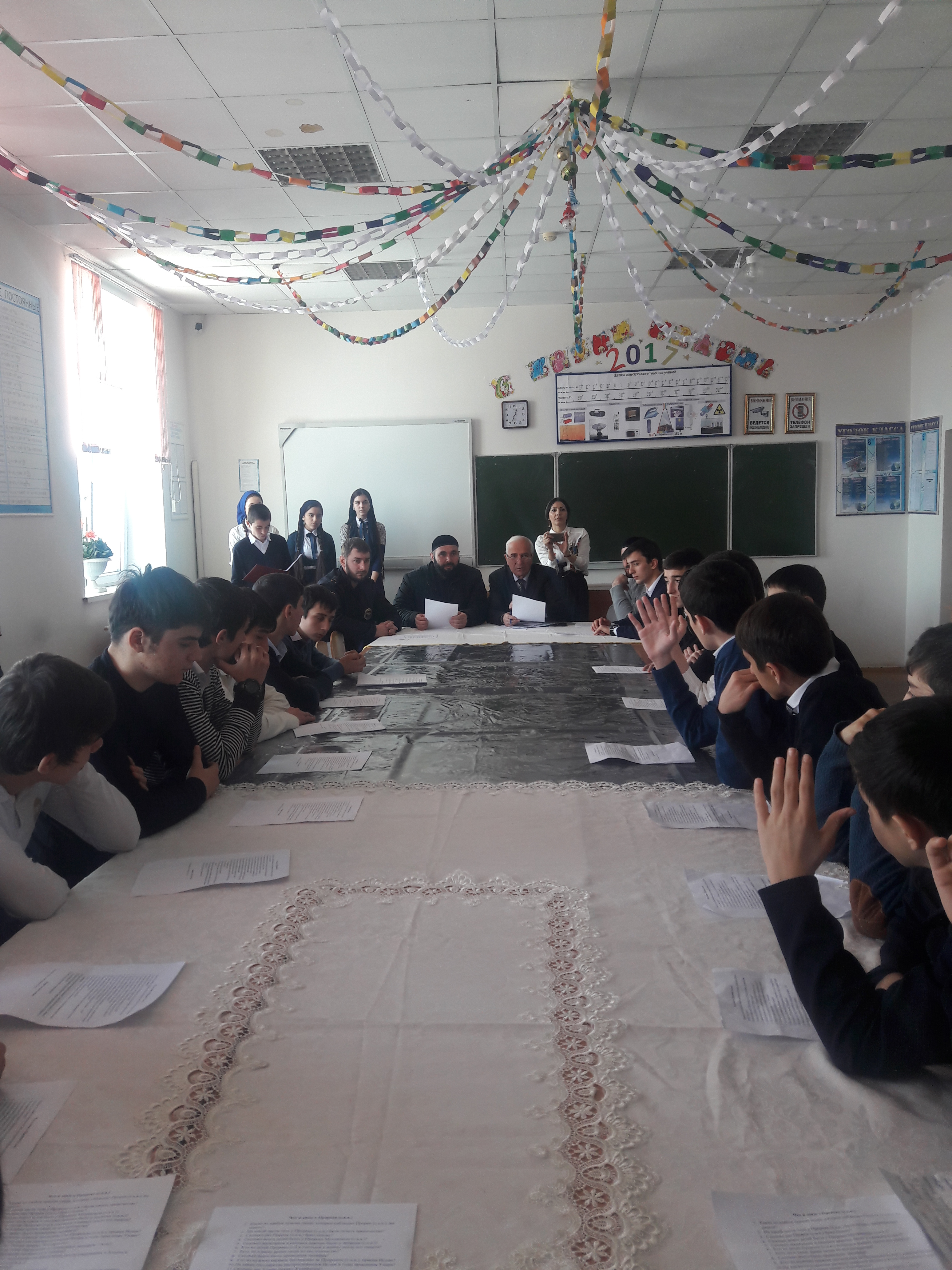 08.12.2016Сегодня, 08.12.16 г., в МБОУ «СОШ № 1 г. Шали» проведен круглый стол среди 9-х классов, посвященный священному месяцу Раби-уль-авваль «Что я знаю о пророке Мухаммаде (с.а.в.)»