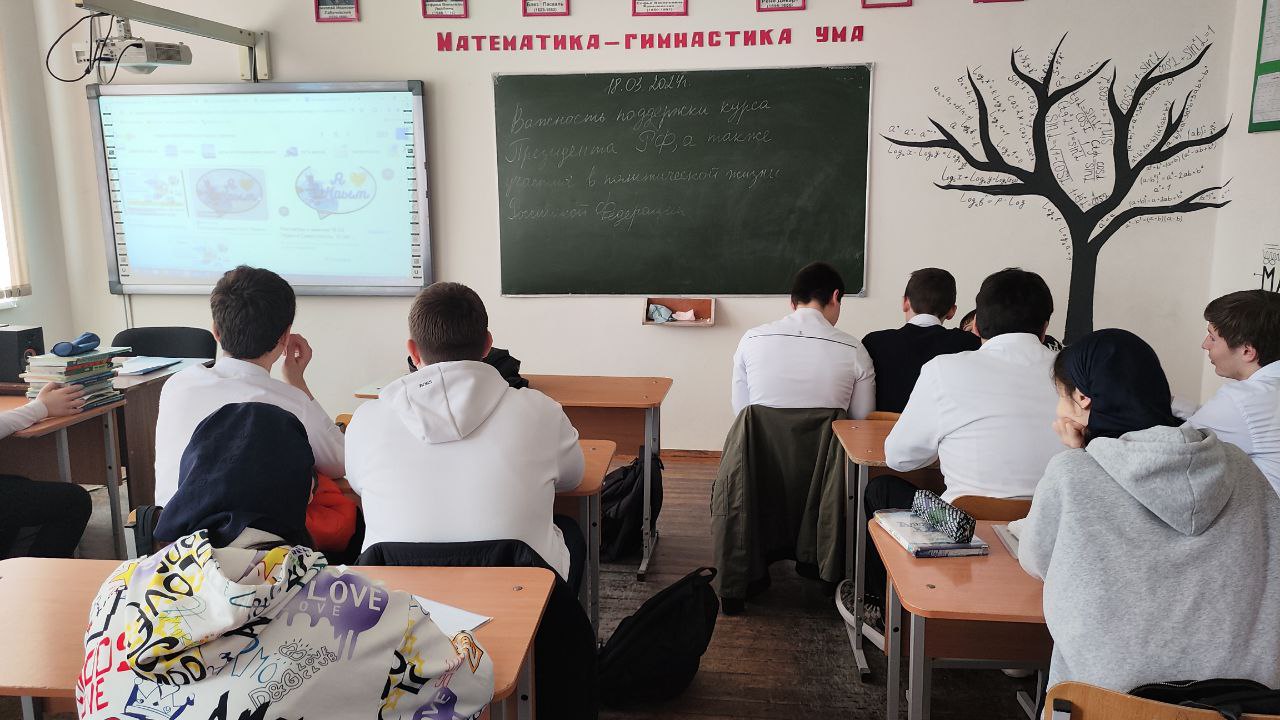 18.03.2024Отделом в Шалинском районе УФСБ России по Чеченской Республике совместно с МУ «Отдел образования Шалинского муниципального района Чеченской Республики» проведено профилактическое мероприятие в МБОУ "СОШ №1 г. Шали" на тему: «Важность поддержки курса Президента РФ, а также участия в политической жизни Российской Федерации».