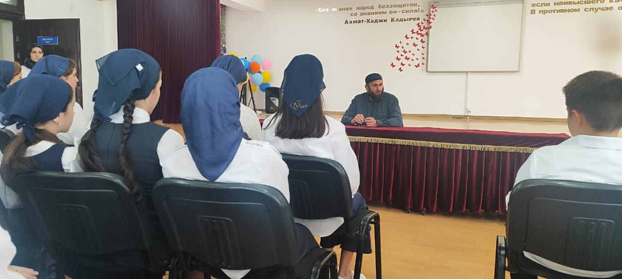 Педагог по ДНВ МБОУ "СОШ №1 г. Шали" Каимов Абубакар провел беседу с учащимися 6-8 классов на тему "Священный месяц Рабби-Уль-Авваль".